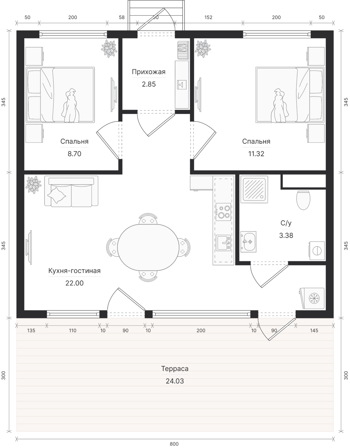 - Площадь террасы:24 м²
